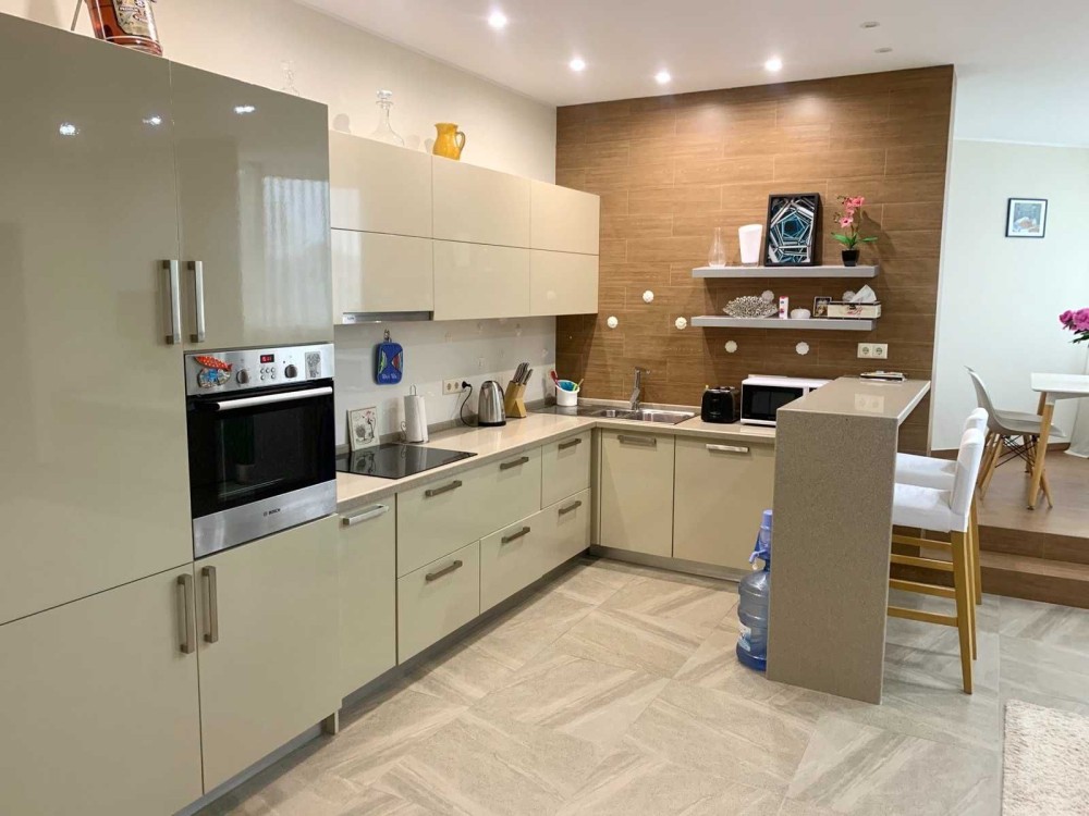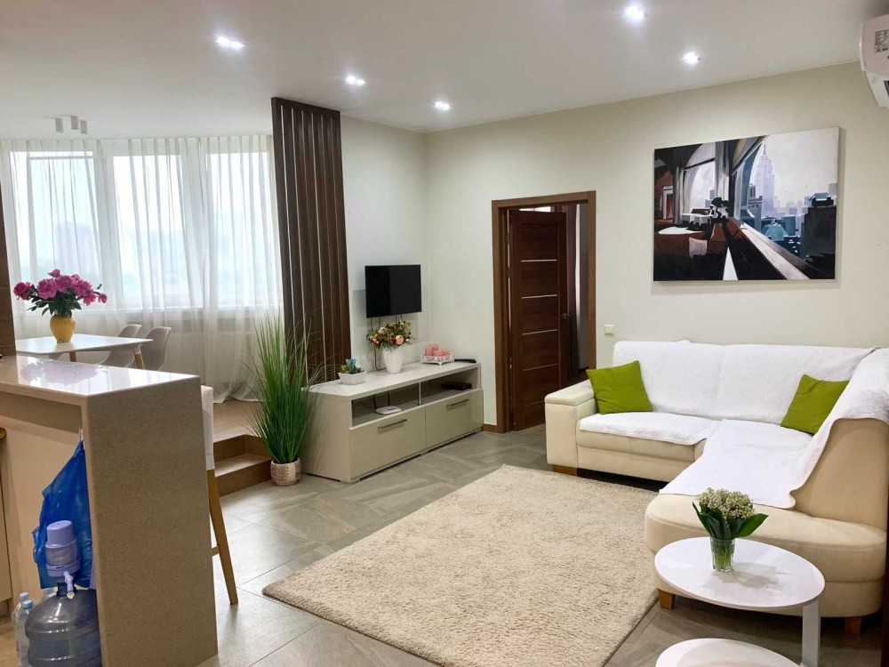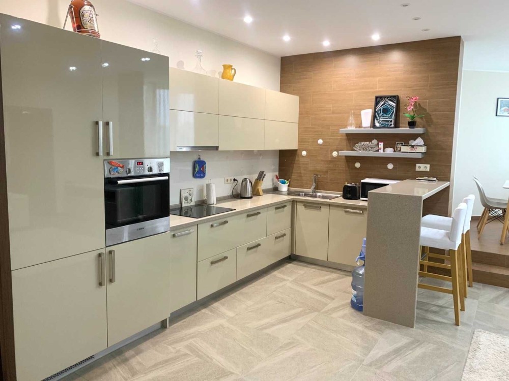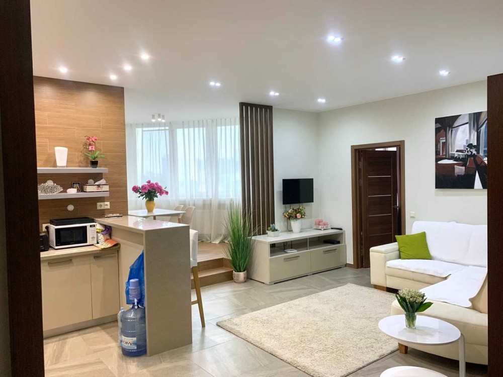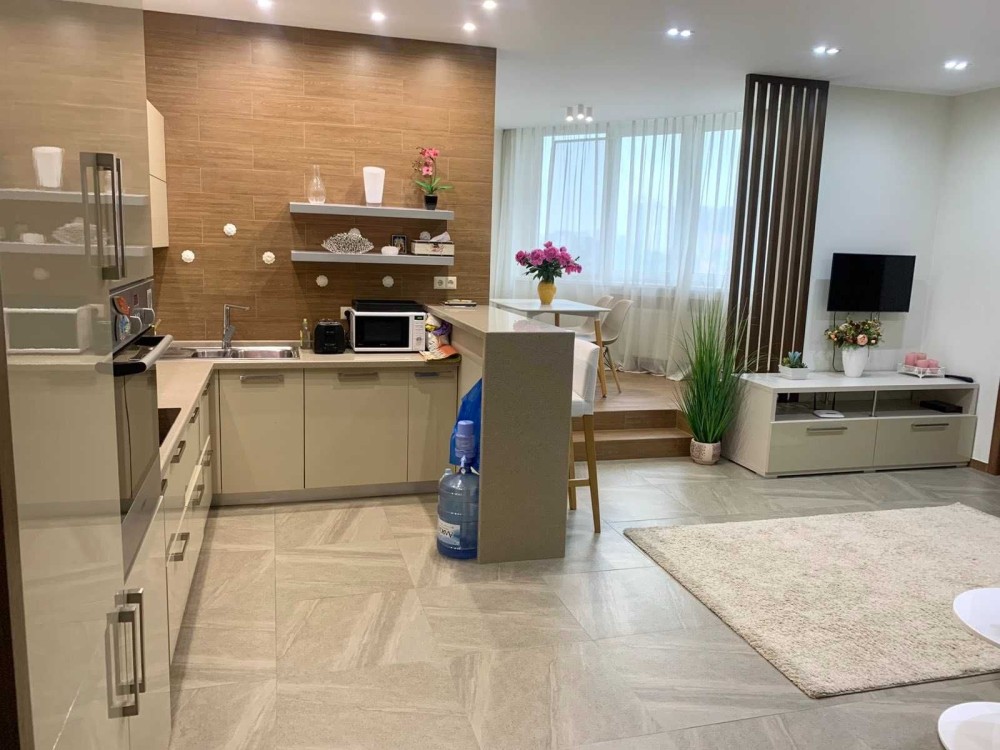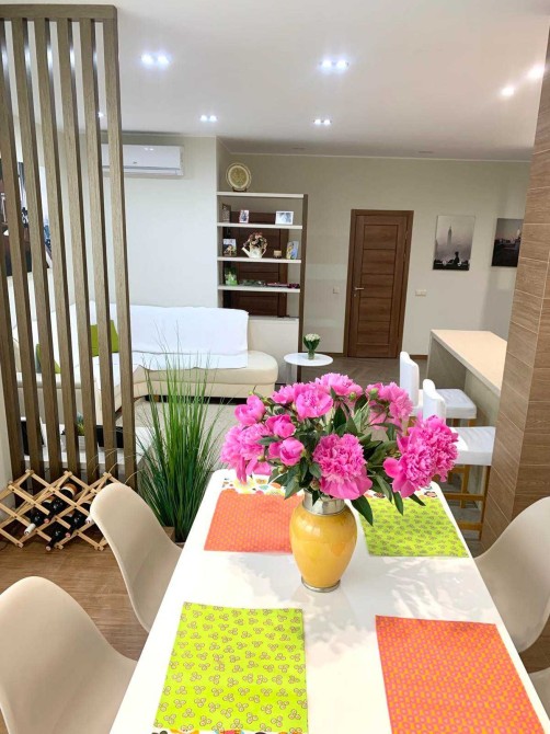 Зручне планування: 2 окремі спальні, простора кухня-вітальня, гардеробна кімната, 3 с/в. Стильний ремонт з використанням якісних матеріалів. Повністю укомплектована якісними меблями та дорогою побутовою технікою світових виробників ( 3 кондиціонери, посудомийка, бойлер, TV, електрочайник, тостер, СВЧ, холодильник , пральна машина, духова шафа, варочна поверхня, витяжка..)
