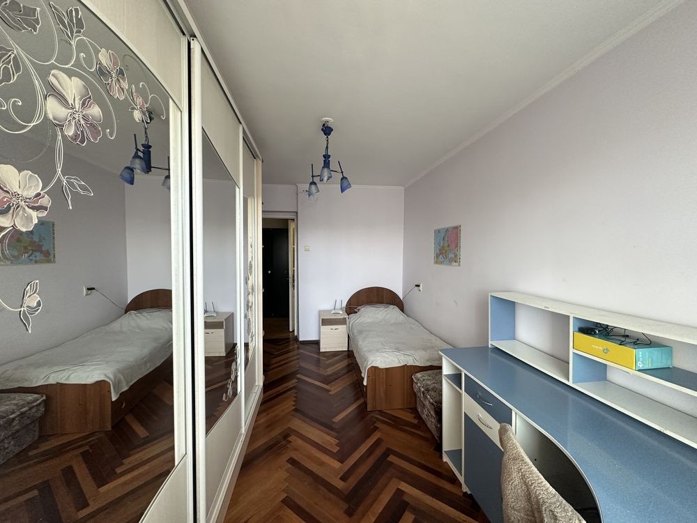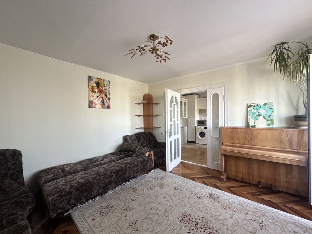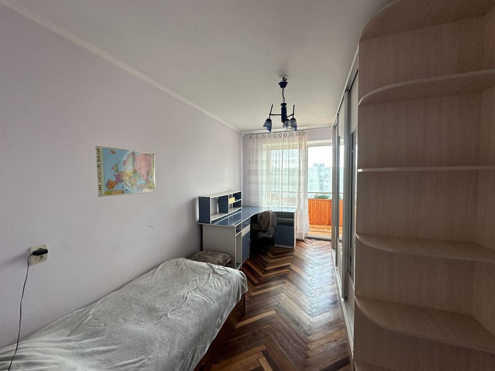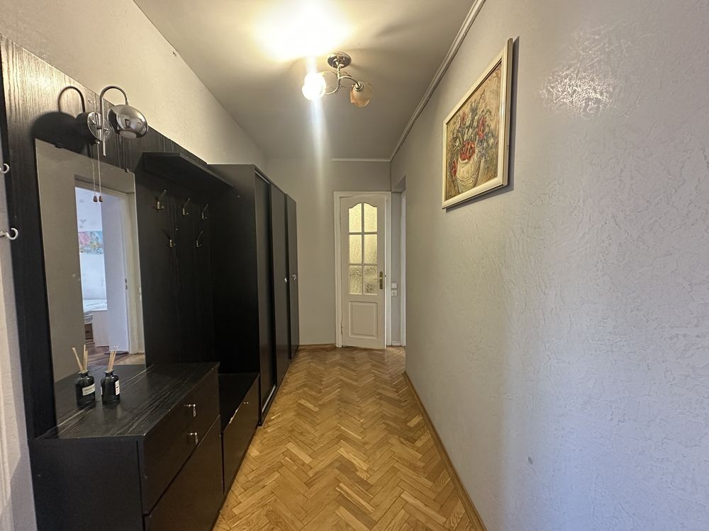 Світла та простора квартира з окремими кімнатами. Зручне планування, паркетна підлога у хорошому стані, великі вікна багато природного світла.