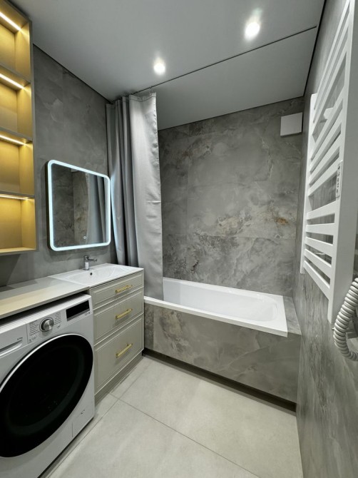 Санвузол роздільний, ванна кімната з пральною-сушильною машиною та санвузол з гігієнічним душом.