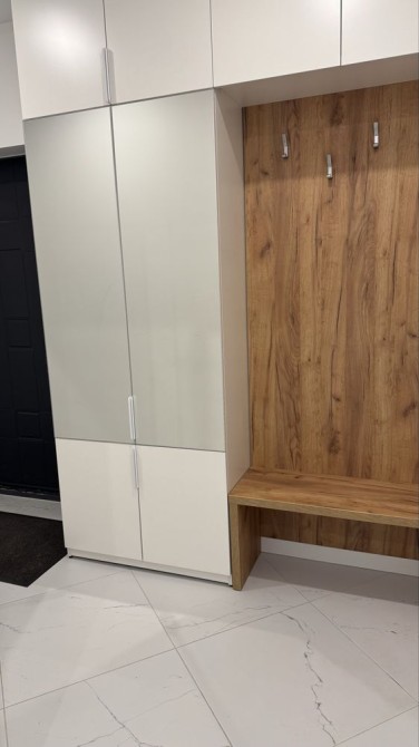 У коридорі є шафа для зберігання речей з дзеркалом .