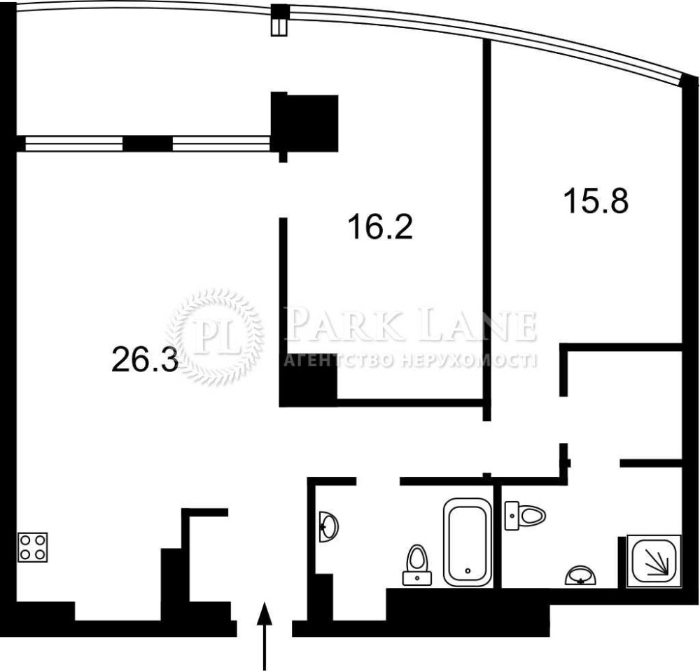 • Планування: кухня-вітальня, майстер-спальня з гардеробом, гостьова спальня, 2 санвузли