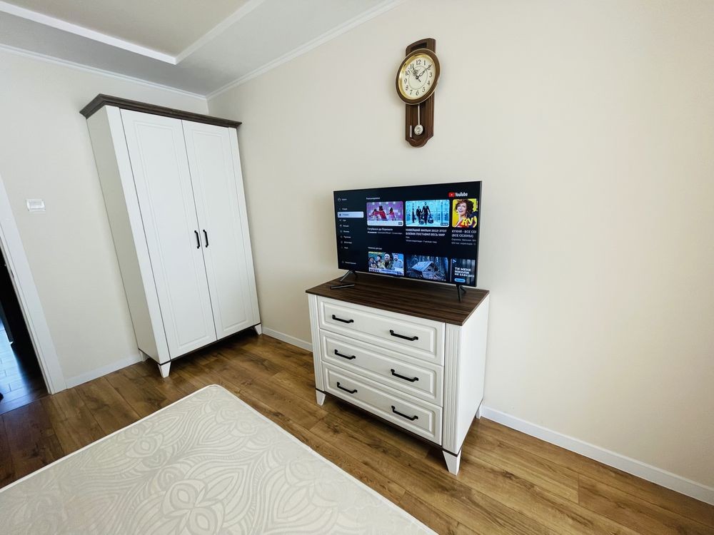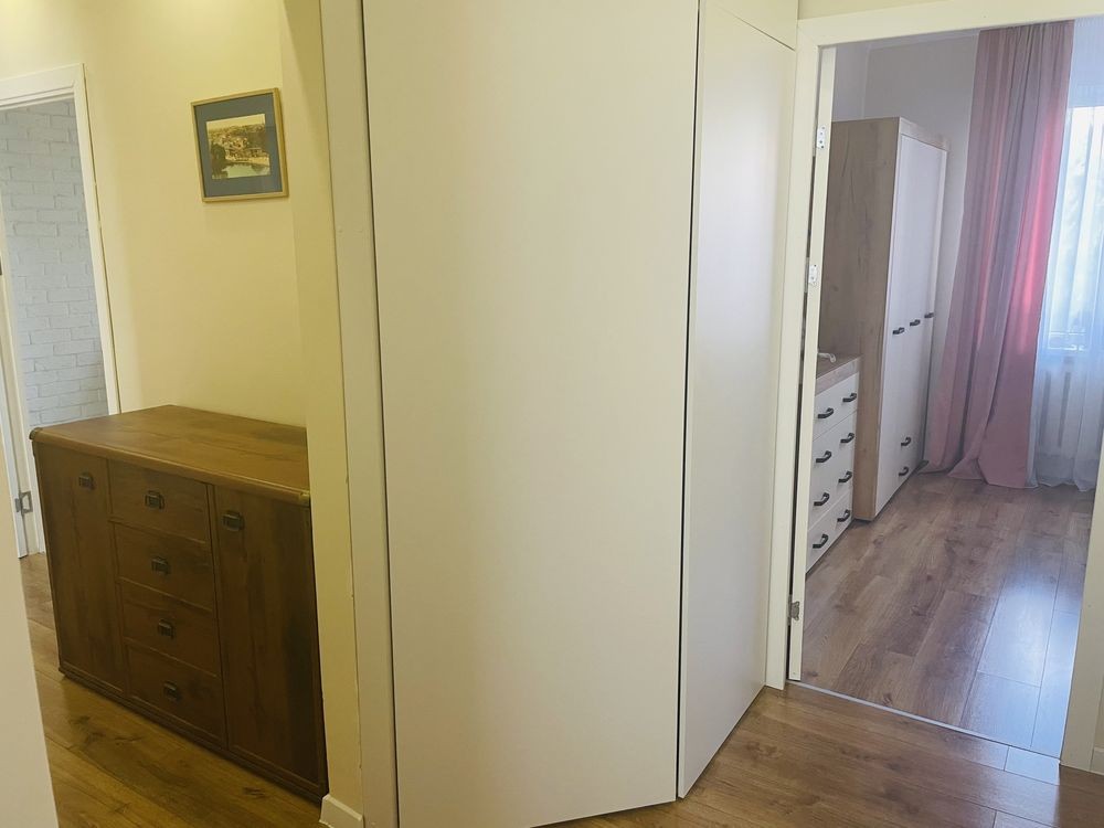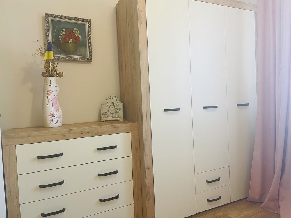 У квартирі 3 окремі кімнати та кухня. Зроблений євроремонт. З меблів є: двохспальне ліжко, великий розкладний диван, шафи, комоди, ліжко в дитячій, кухонні меблі, столи, стільці. З техніки є: пральна машина, холодильник, мікрохвильовка, пилосос, праска, телевізор та інше.