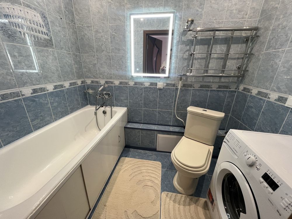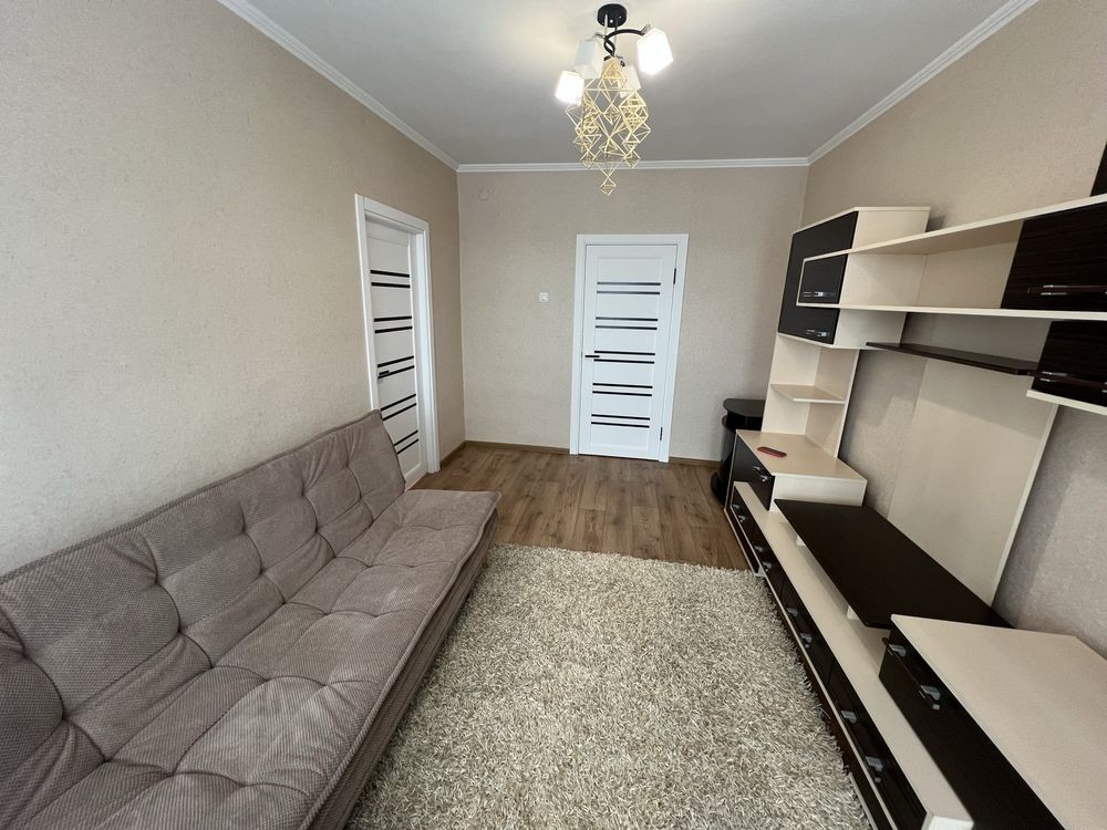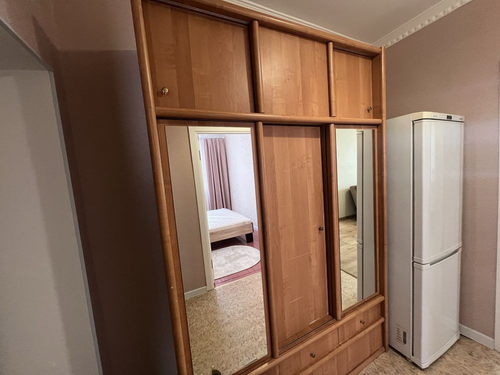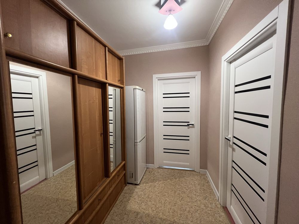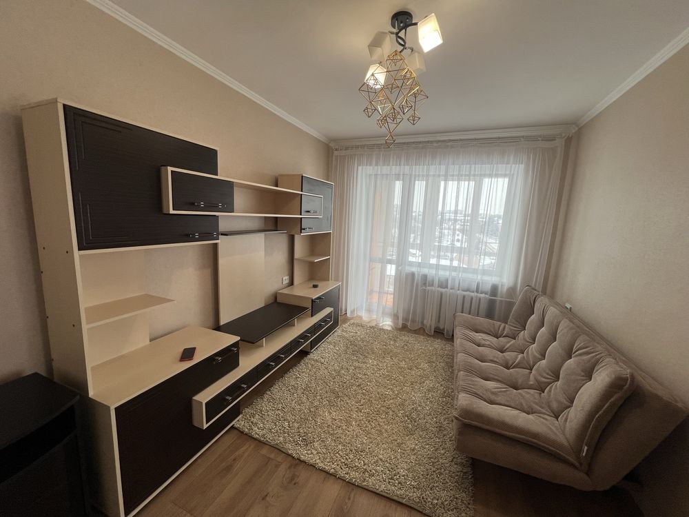 Є кухня вмонтована, нове 2-спальне ліжко, два нових 2-спальних дивани, стінка, велика шафа-купе, прихожа. Холодильник, пральна машина, пилосмок , електрочайник, праска. Сушка для білизни на балконі. Панорамний балкон. Повністю зроблений свіжий косметичний ремонт. Квартира готова до заселення. Газова колонка на гарячу воду. Опалення є постійно.