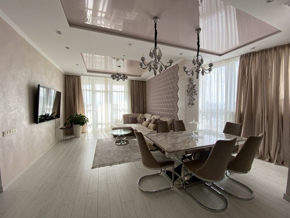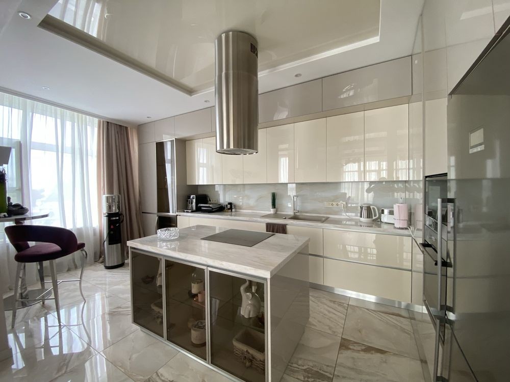 Пропонується в оренду 3к студія в ЖК бізнес класу Golden Park. Будинок розташований в парку. В ЖК є консьєрж, 3 ліфти, генератор, паркінг і облаштована, закрита територія. Квартира складається з просторого холу, кухні-вітальні, спальні, кабінету (дитячої), гардеробної кімнати, 2-х повноцінних санвузлів та просторого, заскленого балкону. Капітальний ремонт з використанням якісних матеріалів, італійські штукатурка, підігрів підлоги, дизайнерське освітлення. Вбудована кухня з вбудованою технікою світових виробників: варильна поверхня, духова шафа, холодильник, витяжка, посудомийна машина, мікрохвильова піч, винний холодильник, 2 великі бойлери та ін. У вітальні великий диван, LCD, дизайнерські меблі та елементи декору. У спальні двоспальне ліжко. 3 кондиціонери. Вся техніка Bosch, сантехніка Grohe. Для любителів спорту, є бігова доріжка. Є генератор і інвертор на ліфт, опалення і воду. Поруч кілька шкіл, дитячих садків, ТРЦ, магазини, ресторани, кафе та ін. До метро 10 хвилин пішки.