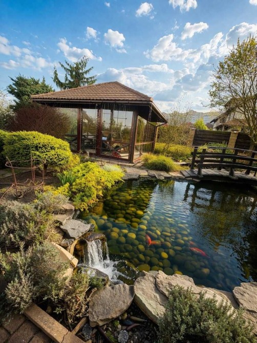 — власний ставок з водоспадом