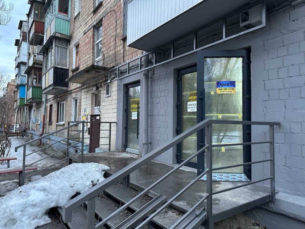 Пропонуються в оренду фасадне торгове приміщення площею 62 м² за адресою: проспект Берестейський, 3. Вартість: 1350$ + комунальні платежі. Санвузол: на даний момент відсутній, проте підведені всі необхідні комунікації для його облаштування. Електроенергія: загальна потужність на весь перший поверх (всі магазини) становить 150 кВт. Вентиляція: наявний витяжний канал, виведений вище даху (розташований у кутовому приміщенні, що найближче до «Чорноморки» та ТЦ «Україна»). Опалення та вода: централізоване опалення, водопостачання та каналізація. Розташування: одностороннє приміщення з виходом виключно на фасад. Інфраструктура: поруч розташовані популярні об'єкти, що забезпечують трафік: «Філадельфія», магазин італійських меблів, магазин стільців, магазин «Двері» та інші. Доступ: власна парковка відсутня, проте встановлені обмежувальні стовпчики з можливістю заїзду/виїзду (орендарю надаються ключі від стовпчиків).