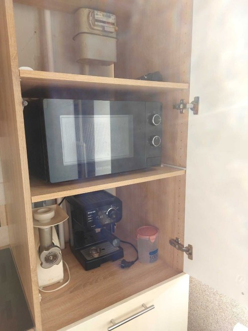 Вбудована кухня, два дивана, холодильник, пральна машина, духова шафа, верхня поверхня, витяжка, мікрохвильова піч, кавоварка.