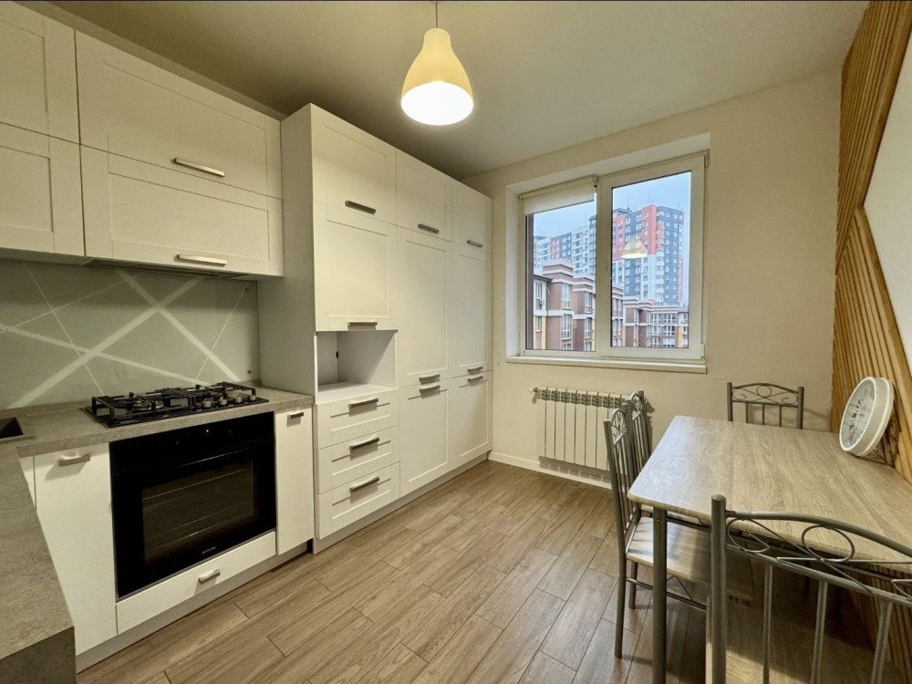 Кухня: обідній стіл і 4 стільця, газова плита (4 конфорки), духова шафа, холодильник з морозильною камерою, двоконтурний газовий котел, система очищення води (зворотний осмос).