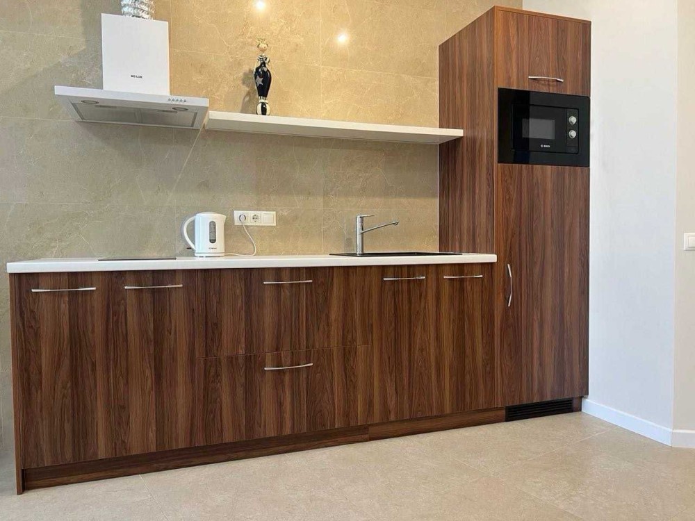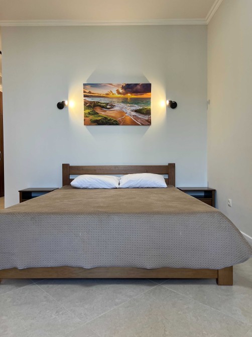 Загальна площа 40 кв.м., кухня\студія. В квартирі можуть проживати: самотні, пари, молода сім'я, сім'я з дитиною (окреме спальне місце для дитини). Є все, що потрібно для комфортного відпочинку: бойлер, пральна машина, варильна поверхня, мікрохвильова піч, чайник, ТБ, інтернет, кондиціонер, душове відділення з тропічним душем, сушка для рушників, фен, праска.