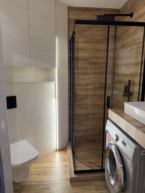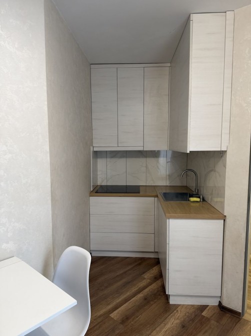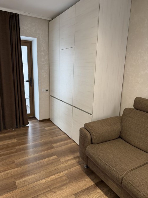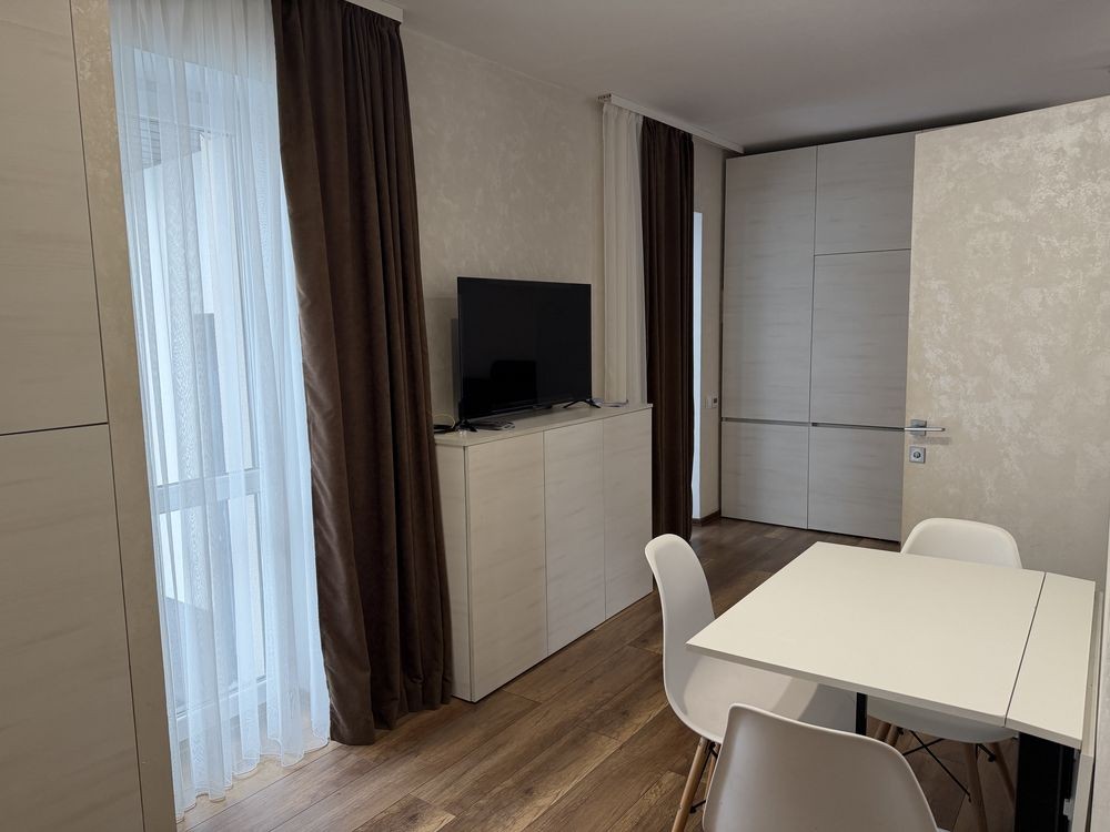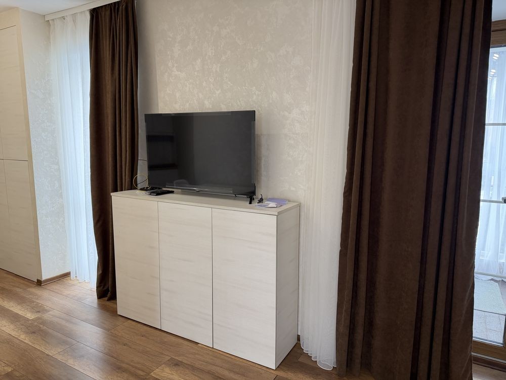 Сучасний ремонт, є усі необхідні меблі та побутова техніка ( пралка, телевізор, вмонтований холодильник). Є окрема спальня та вихід на терасу.
