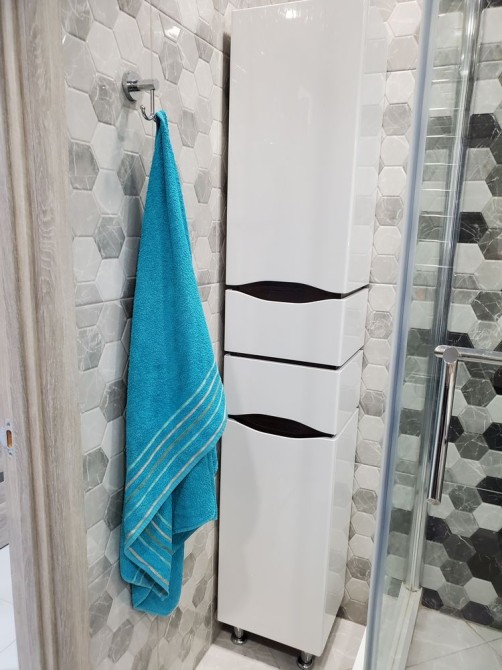 Сан. вузол просторий світлий та практичний встановлена душова кабіна.