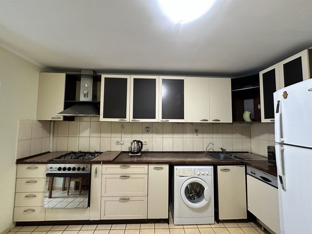 Загальною площею 105 кв.м, кухня 16 кв.м, ванна 7,5 кв.м.
