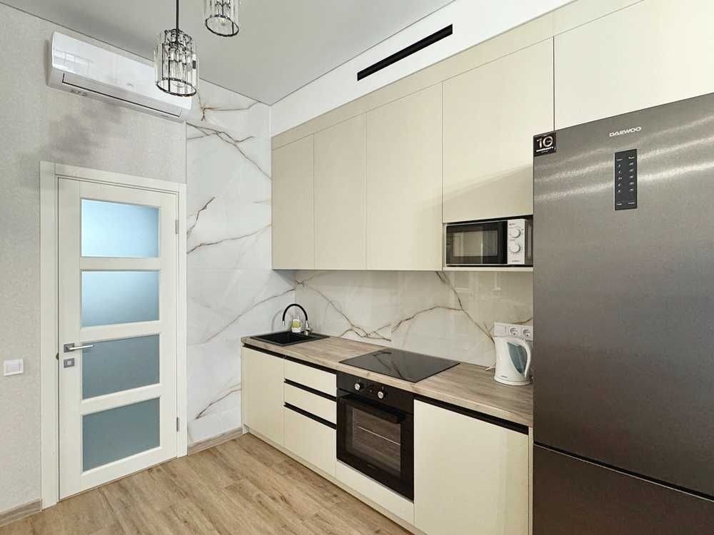 Ремонт новий, виконаний у спокійних світлих тонах, після завершення у квартирі ніхто не проживав. Висота стель — 3,2 м, що створює відчуття простору.