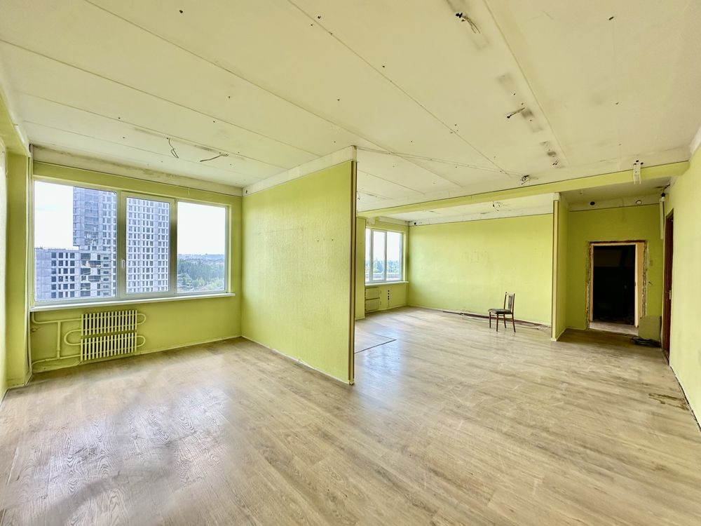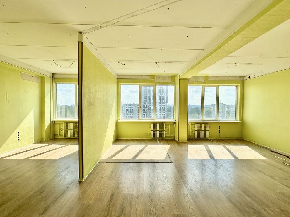 Площа: 69м, спланована в окремий кабінет, серверну/гардероб та велике приміщення поділене на дві робочі зони