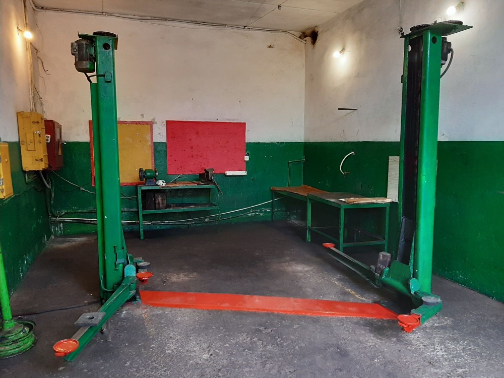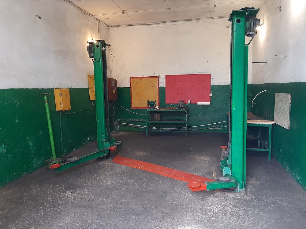 В одному з боксів є автомобільний підйомник, у другому — оглядова яма.