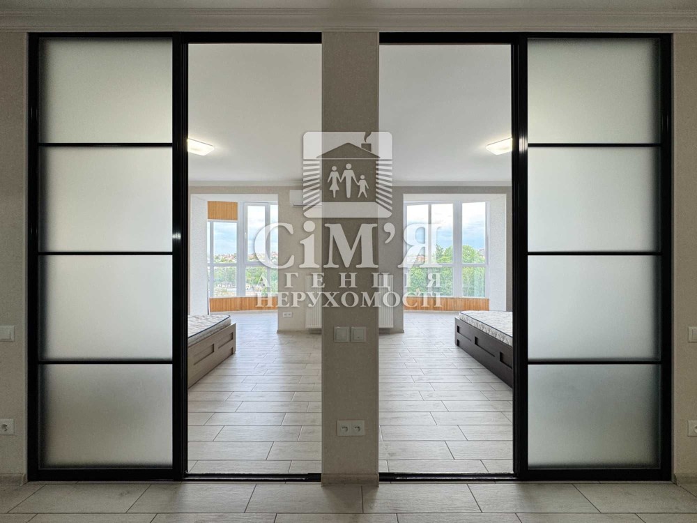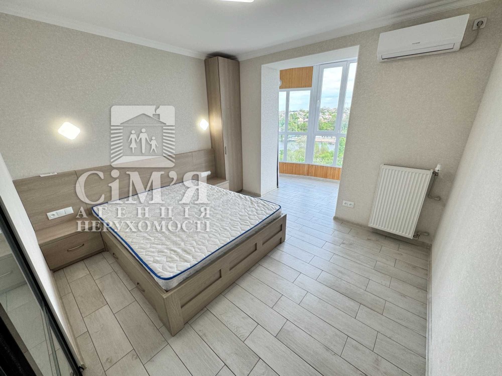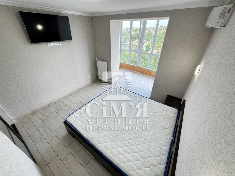 У першій спальні - встановлене двоспальне ліжко з ортопедичним матрацом, при ліжкові тумби. Із спальні є вихід на лоджію із панорамним виглядом на річку Південний Буг !