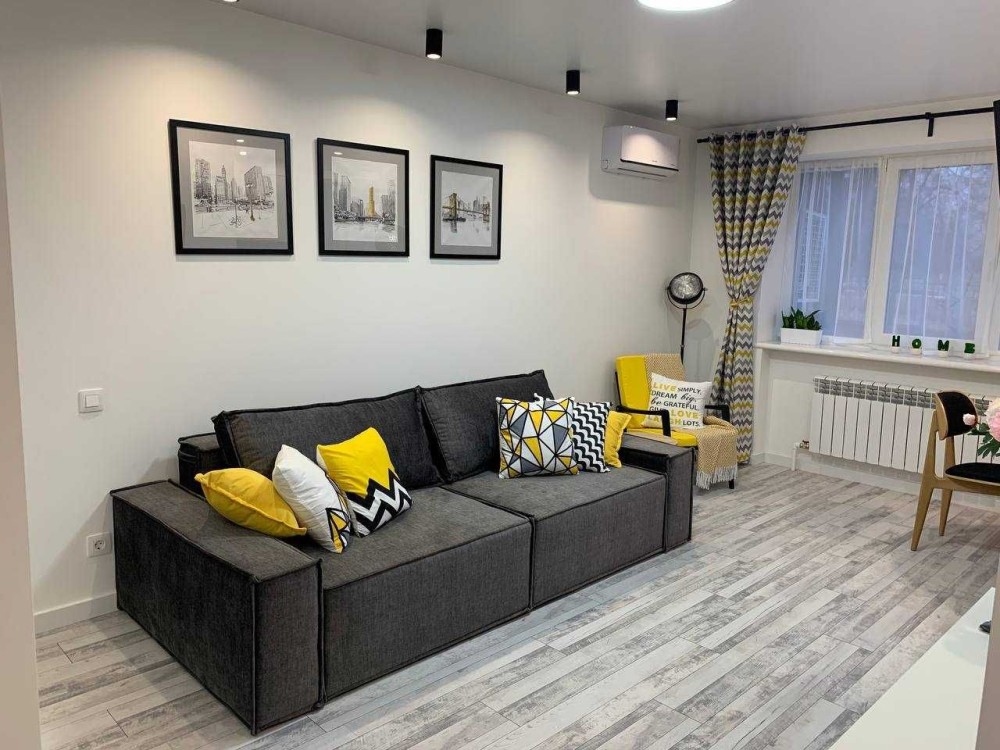 Квартира чиста, затишна, після капітального ремонту всі комунікації замінені. Велика спальня, простора студія, компактний санвузол. У квартирі встановлені всі необхідні для життя меблі (столи, стільці, шафи), побутова техніка: пральна машинка, духовка, варильна поверхня, витяжка, холодильник, газова колонка, телевізори. Встановлено охоронну сигналізацію, пожежну сигналізацію, теплу підлогу, кондиціонери.