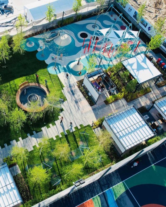 Закритий комплекс з власною охороною, вхід тільки за перепустками. Чудова прибудинкова територія. Багато зелені, доріжок для піших прогулянок та місць для відпочинку. Власна зона барбекю для жителів ЖК. Також на території є свій відкритий басейн.