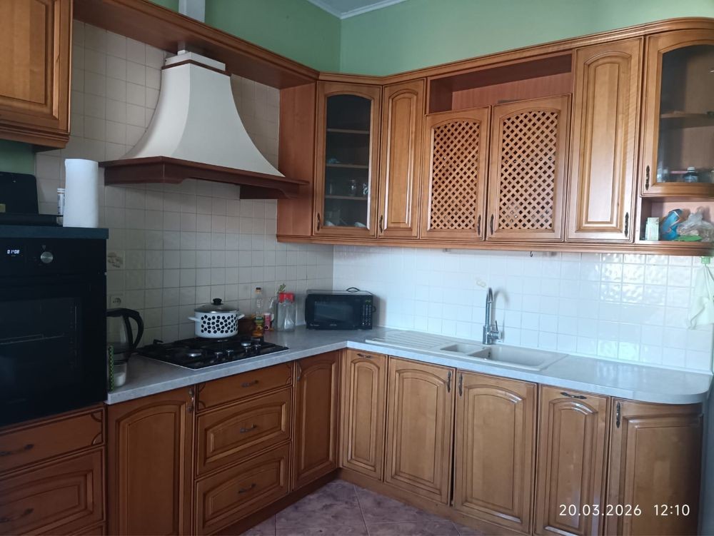 Здам пів будинку в хороші руки. Площа 160 м кв, газ. Друга половина будинку закрита, ніхто не проживає. Є 2 санвузли, кухня повністю обладнана, зал з функціонуючим каміном, 3 спальні кімнати. Є бомбосховище у підвалі будинку, де можливо спати. Подвірʼя вимощене плиткою, сад, зона барбекю, простора альтанка. Можливість паркування машини у дворі.