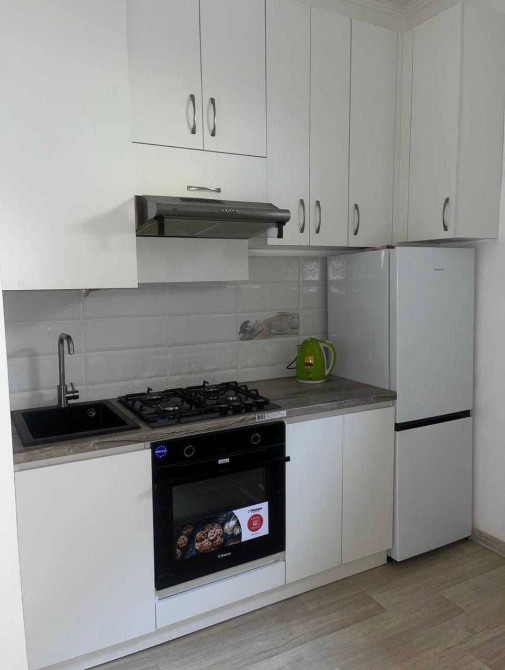 Кухня оснащена плитою, духовкою, холодильником та пральною машиною.