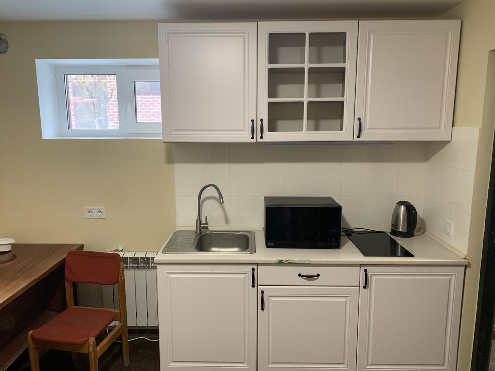 Квартира знаходиться на цокольному поверсі приватного будинка. Територія закрита, по периметру є відео нагляд. Площа кімнати 12 кв м, сан вузол (душ, туалет) 5 кв м, тамбур 3 кв м. У Квартирі є автономна електроенергія 24/7, цегляна піч на дровах, на який можно готувати, безперебійний інтернет. З техники: індукційна плита, холодильник, бойлер, електро конвектор, електро сушилка, електро обігрівач, витяжка, мікрохвильовка, електрочайник. З меблі є: кухня, стіл, 2 стула, ліжко 2м*0,9м. + матрац, шафа для речей. По господарчім речам : все що треба по необхідності.