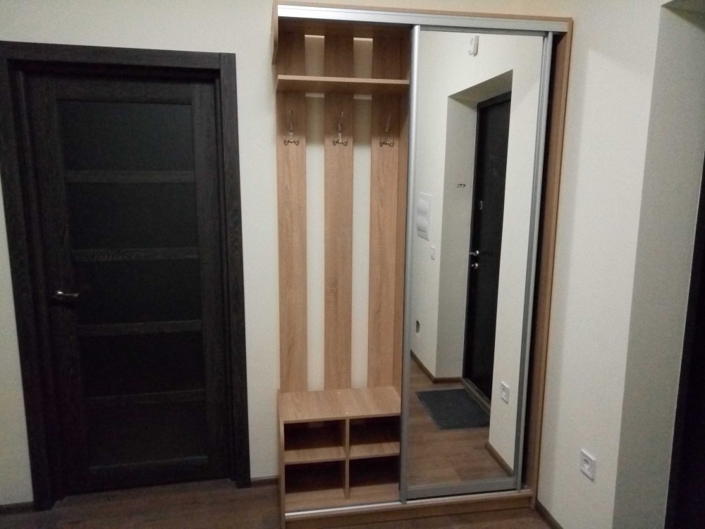 Коридор: зручна прихожа з вішалками та великим зеркалом.