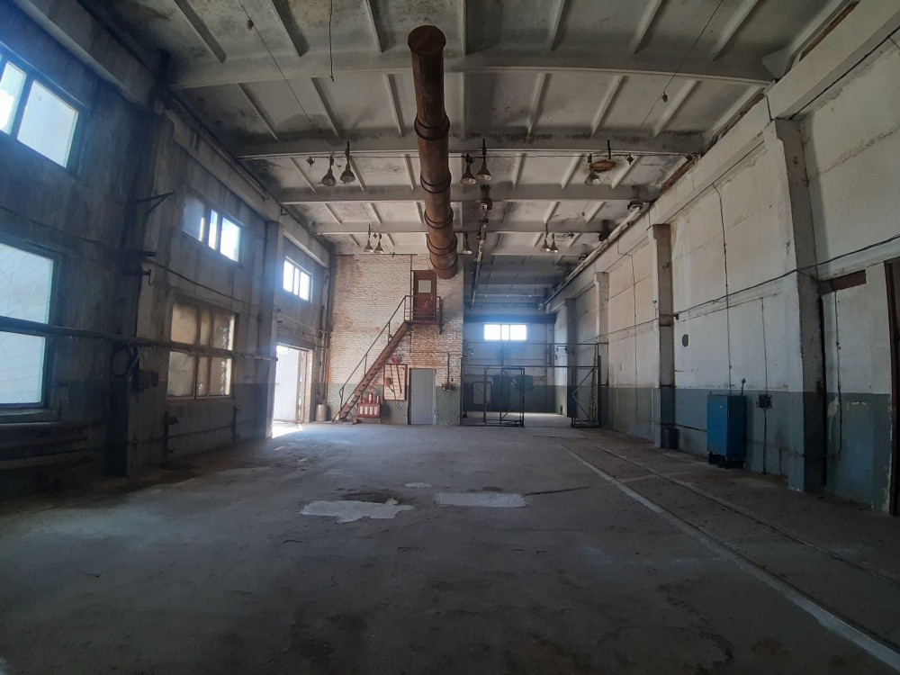 Висота стелі - 6,5 м. Підлога - бетонна. Ворота 3,5 м х 3,0 м.