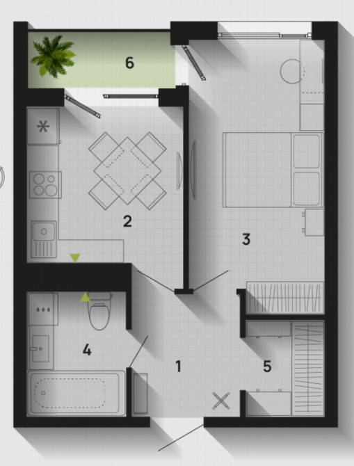• Загальна площа 37 м2