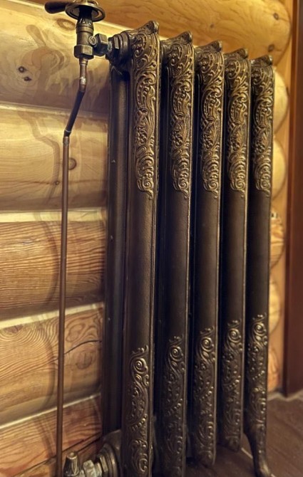 Дизайн интерьера сруба реализован в стиле лофт со стилизованной наружной проводкой, керамическими выключателями и розетками. Естественная вентиляция. Отопление водяное за счёт тёплого пола и радиаторных батарей - художественное литьё из чугуна со стилизоваными кранами производства Италия. Вся сантехника, фурнитура и плитка производства Италии. Электрокотёл 9 кВт и бойлей 200 л производства Германии, система водоподготовки под питьевое качество воды.