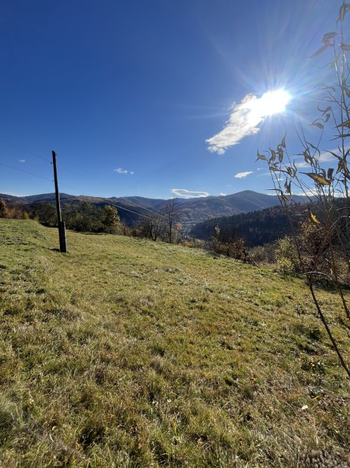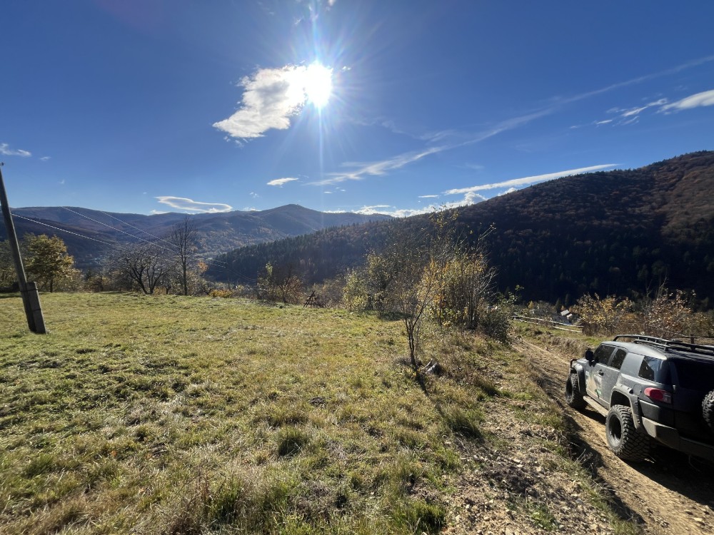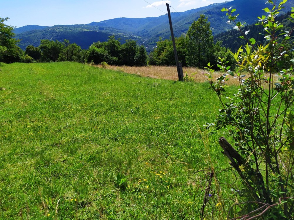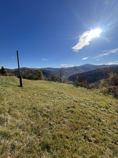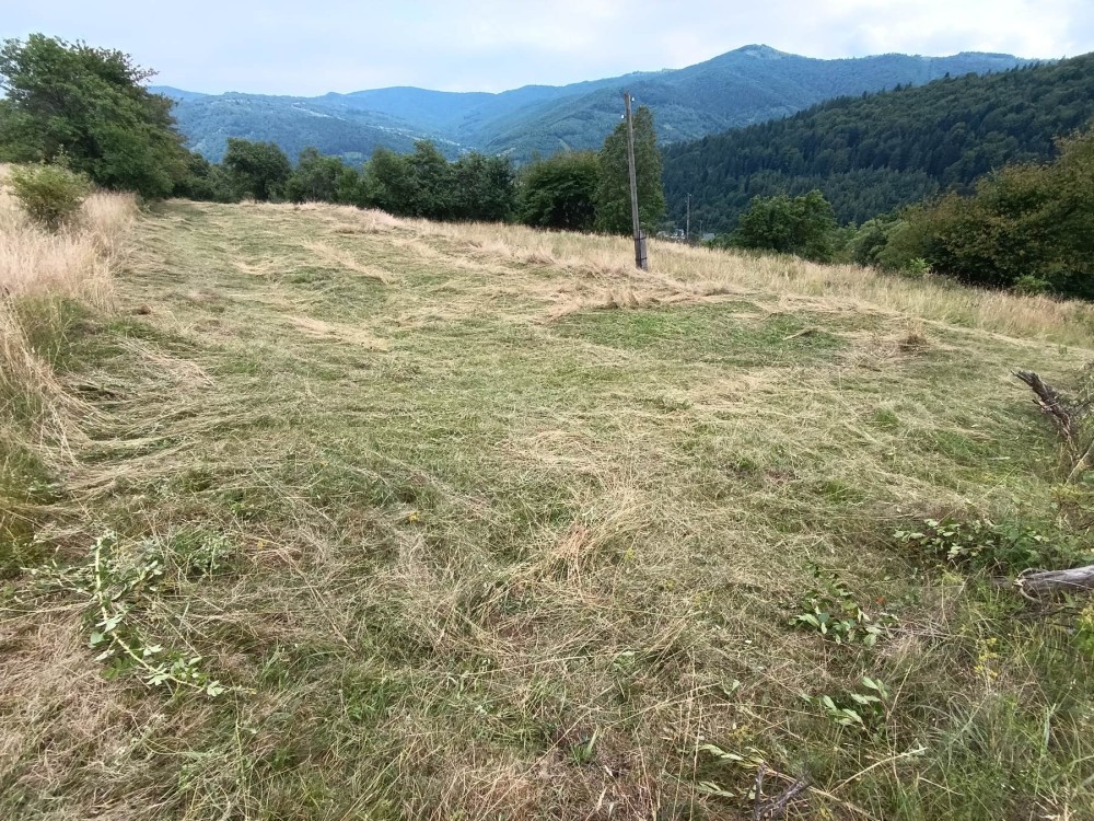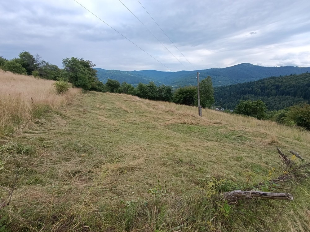 Ділянка розчищена від чагарників. Чудове, спокійне місце на пагорбі звідки відкривається красивий краєвид на гори та ліс.