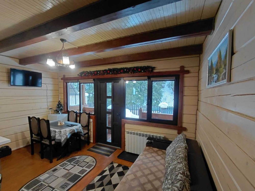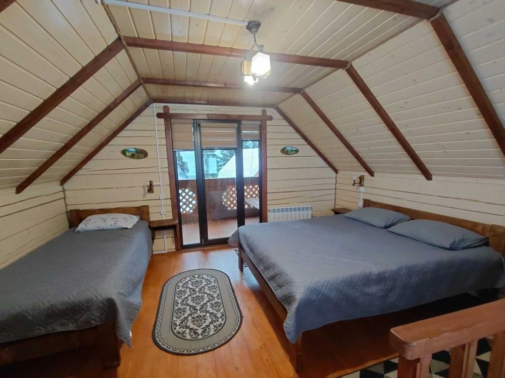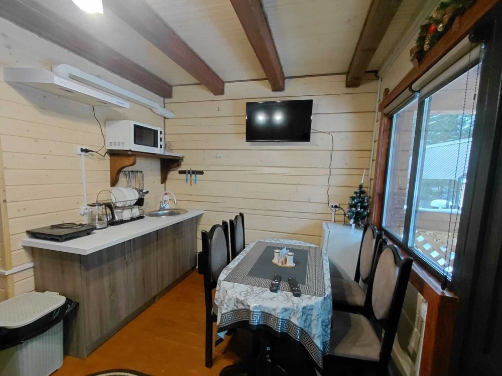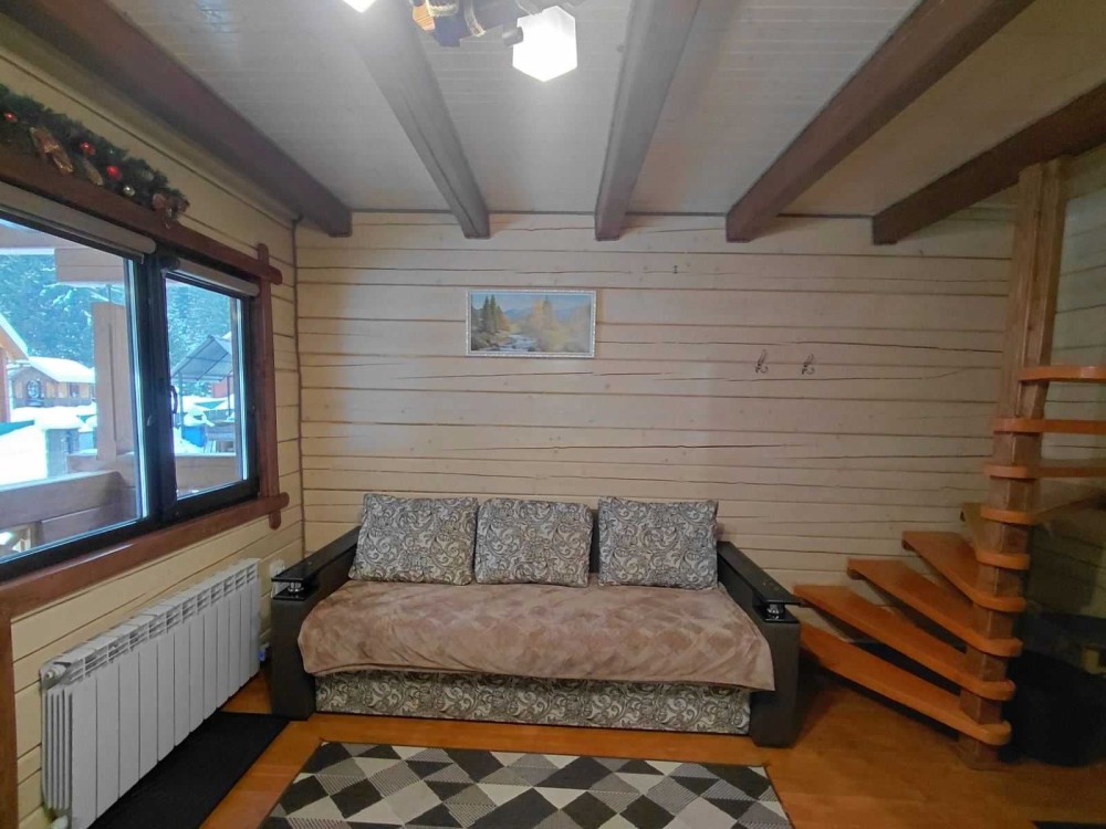Ціна від 10000 грн. До 7 гостей -10000 грн за добу. Лазня та басейн оплачується окремо 5000 грн за добу або погодинно -1000 грн за годину.(Мінімум 4 години). Доплата за кожного наступного гостя 1000 грн. П’ятниця ,субота та неділя вартість оренди на 1000 грн вище. 332 Будинок-зруб з басейном з підігрівом та лазнею. 3 великі спальні, розрахований лише до 12 гостей, за стіл можна розмістити до 12 гостей та спальних місць 9. Приймаються тільки не гучні компанії. На території є альтанка з зоною барбекю, мангал, тенісний стіл. На першому поверсі: зал-студія, басейн з підігрівом та лазня. На другому поверсі 3 роздільні, просторі спальні. Лазня, басейн та квадроцикл оплачується окремо. Також можлива оренда без лазні та басейну. Будинок повністю обладнаний для комфортного проживання, є всі необхідні меблі та побутова техніка, є стіл на 8 персон та камін.
