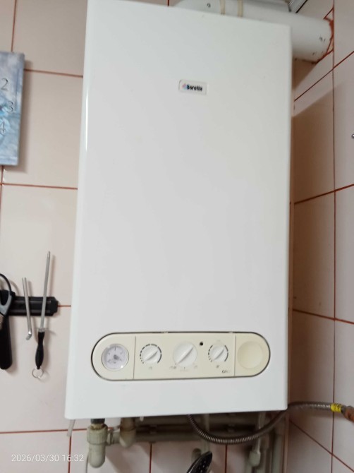 Газове опалення, 2-контурний газовий котел, централізоване водопостачання, вигрібна яма.