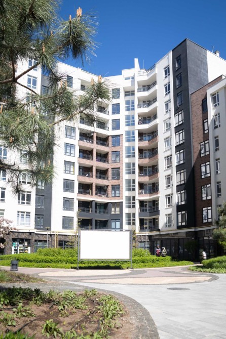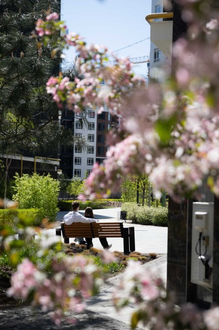 Двір без машин: Велика парковка винесена за периметр комплексу, щоб всередині панувала тиша та безпека.