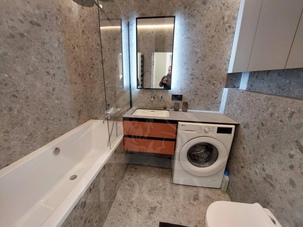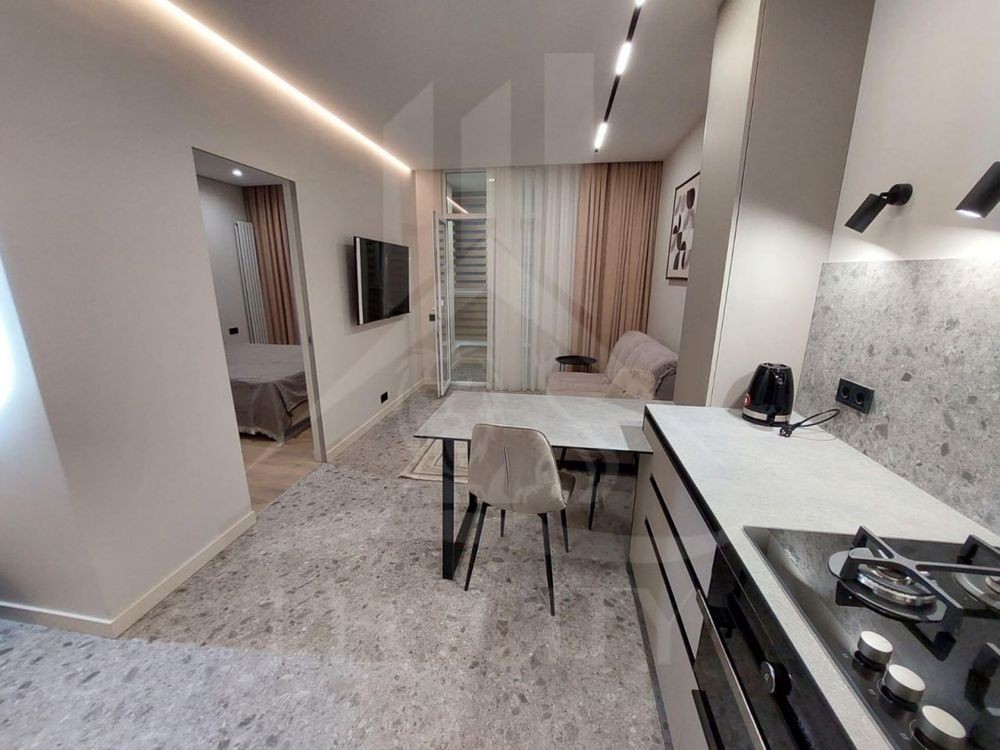 Оренда сучасної квартири-студії в ЖК Акварелі-2. В кімнаті: розкладний диван, телевізор, кондиціонер, письмовий стіл, шафа, комод. Кухня обладнана необхідною технікою. Просторий балкон-лоджія. Санвузол з ванною, встановлений бойлер. Чудова інфраструктура: в пішій доступності декілька супермаркетів (Новус, АТБ), безліч продуктових крамниць та кавярень. Вартість оренди 12000 грн. Умови оренди:оплата за два місці+послуги рієлтора (50%). комісія: 50%