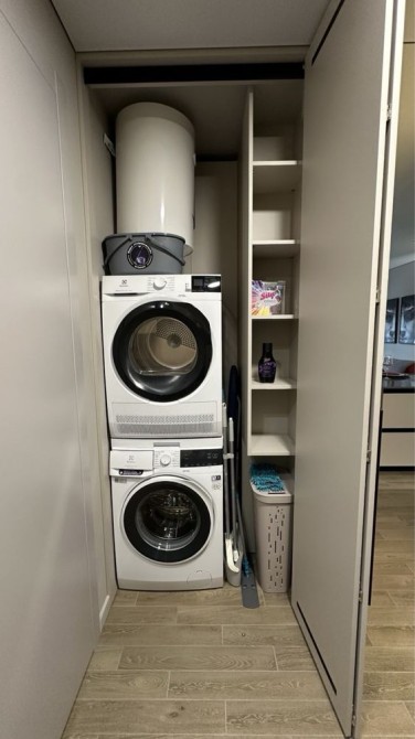 Також в коридорі є вбудована шафа, що приховує водонагрівач на 80л з сухим теном, пральну машину та сушильну машину.