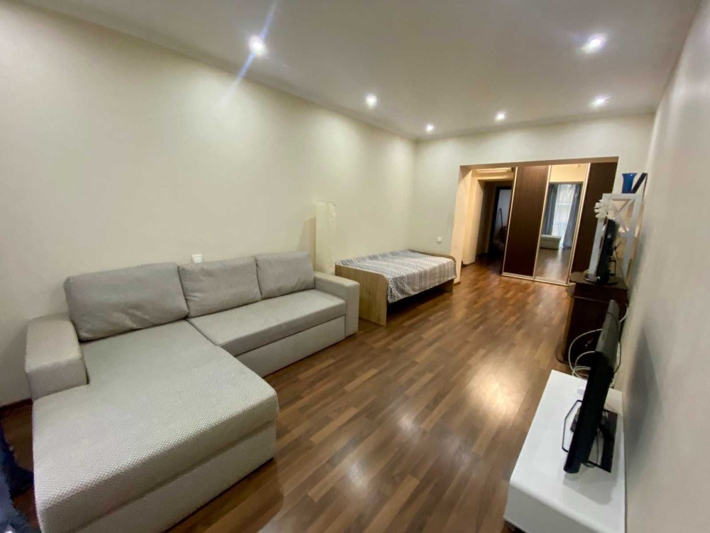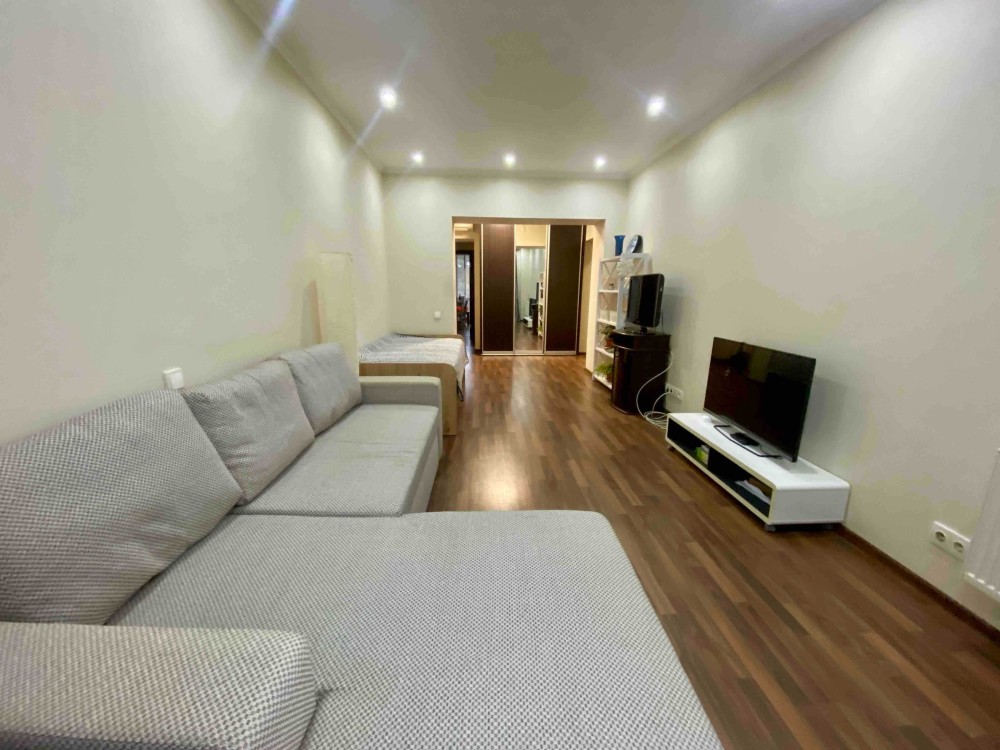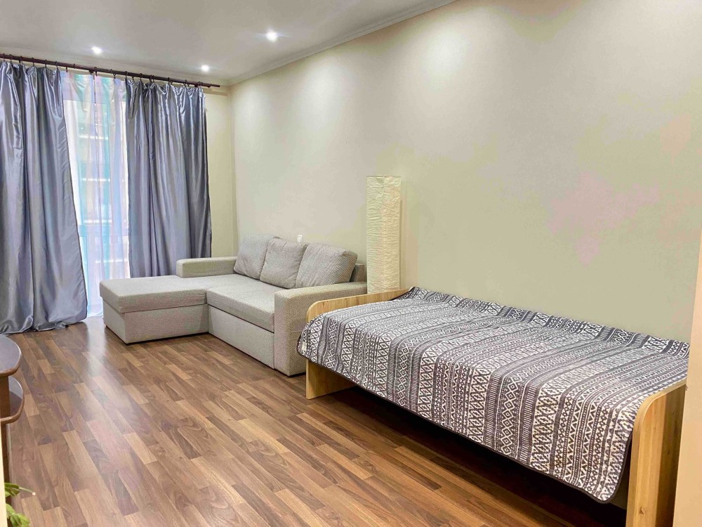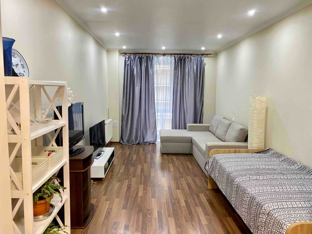 - у кімнаті розкладний диван, односпальне ліжко, телевізор, комод, шафа-купе