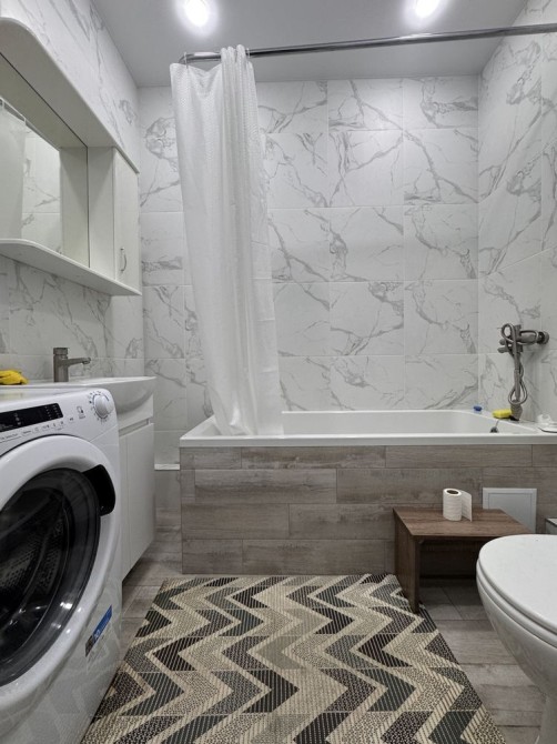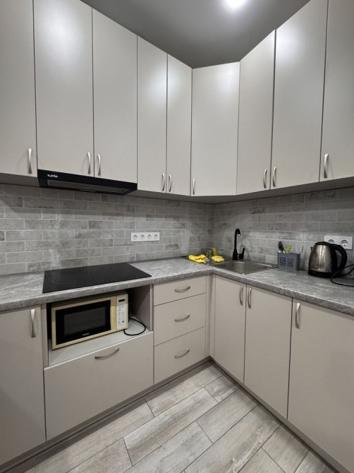 Техніка: мікрохвильова піч, холодильник, електрочайник, витяжка, пральна машинка, сушильна машина, бойлер, варильна поверхня.