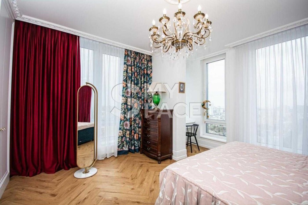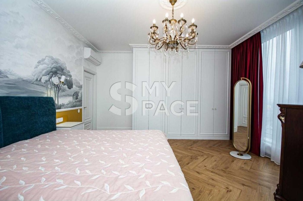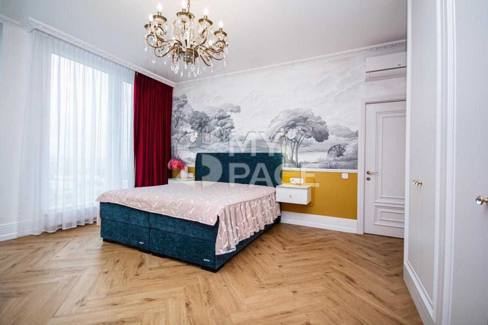 Продуманий дизайнерський проєкт із художнім розписом стін та індивідуальним підбором тканин. Простір створений для комфорту, естетики та спокійного життя.