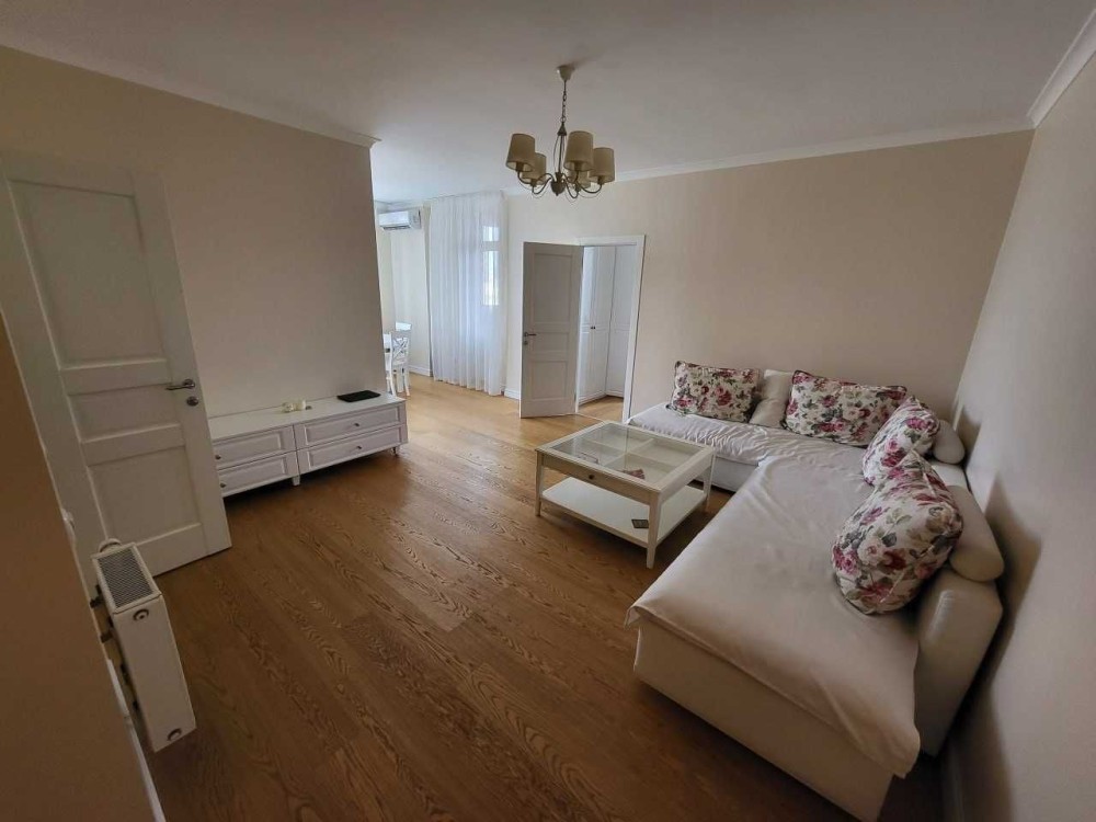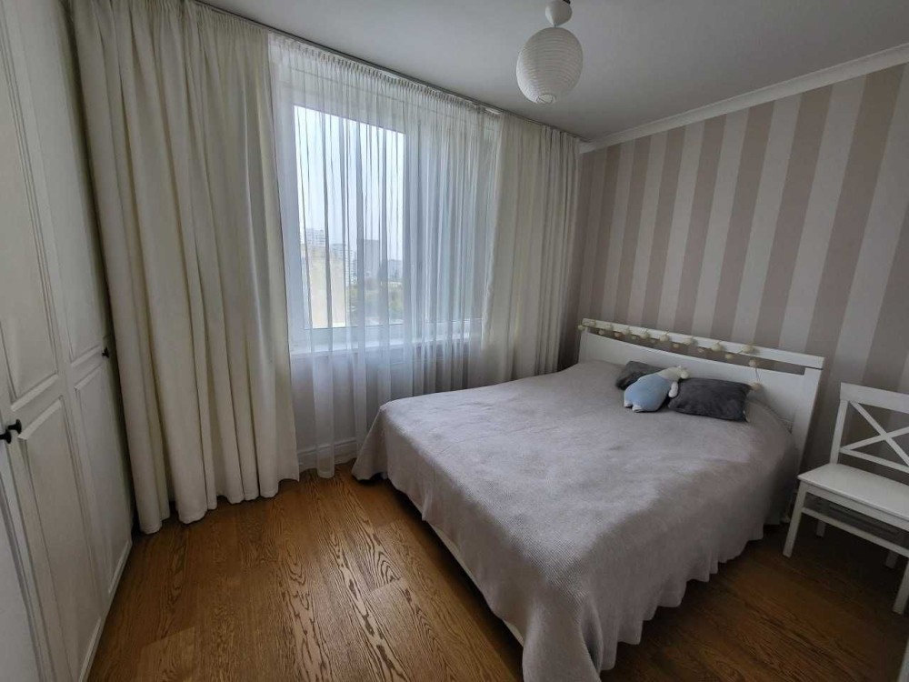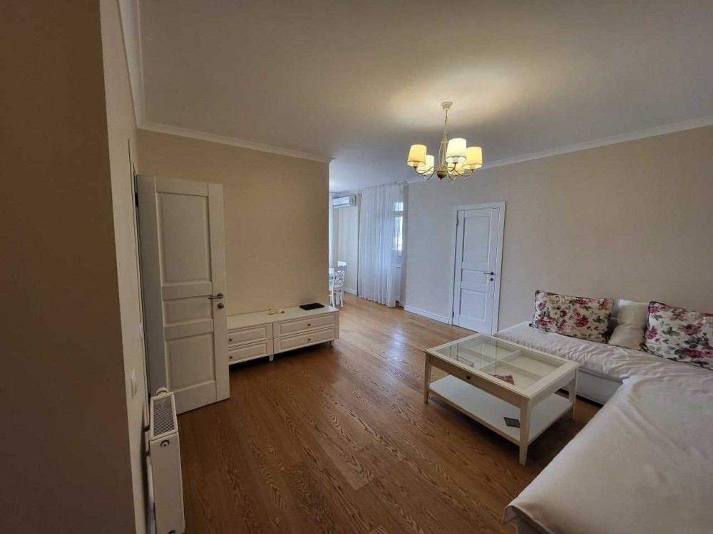 Затишна валика квартира 60 м2 з новим євроремонтом, повністю укомплектована меблями та побутовою технікою: велике ліжко, диван, вмістка шафа, пральна машина, холодильник, бойлер, духова шафа, кондиціонер. Дизайнерська вбудована кухня, засклений балкон.