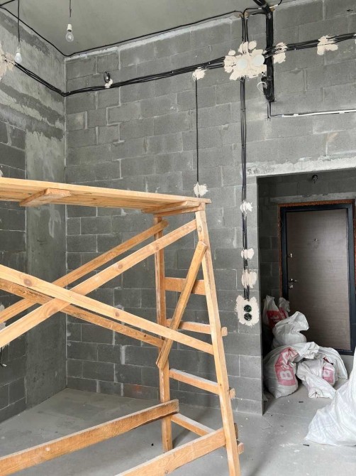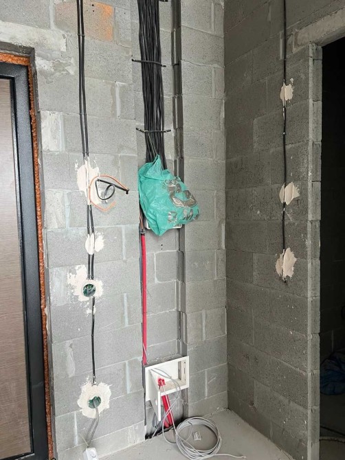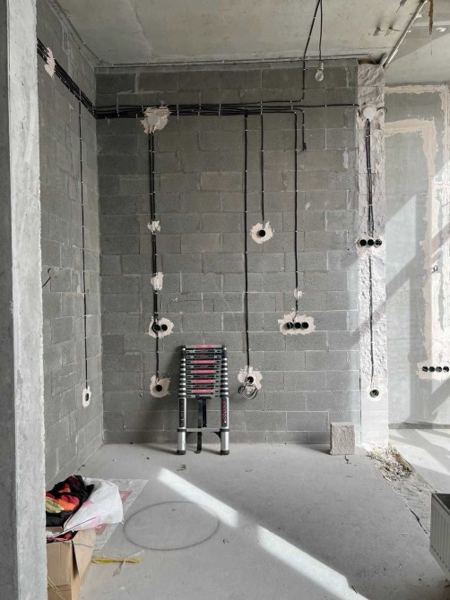 Вже виконано розведення електрики за дизайн-проєктом і траси під кондиціонер.