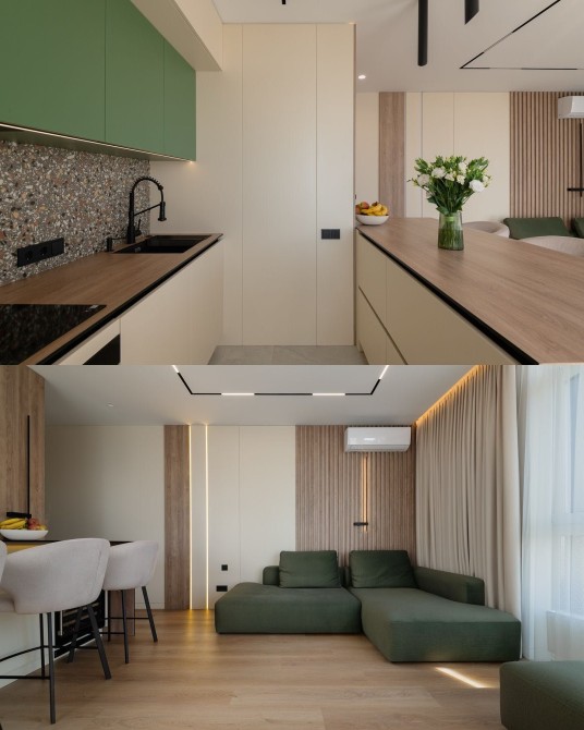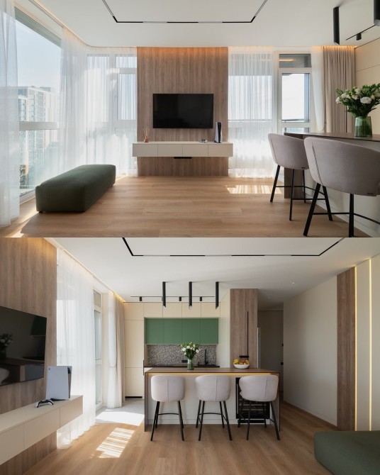 Планування: передпокій, ванна кімната з душем, простора кухня-вітальня, балкон, спальня з гардеробною.