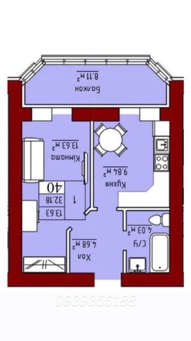 • Загальна площа 41 м2