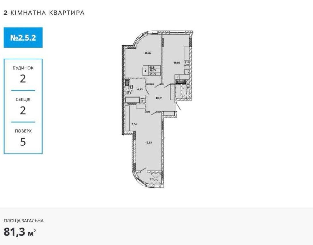 • Загальна площа 81.3 м2