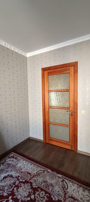 •Міжкімнатні двері з натурального дерева, на підлозі якісний ламінат та плитка