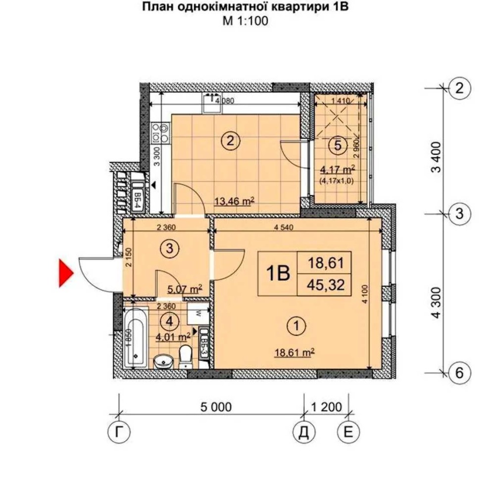 • Загальна площа 46 м2