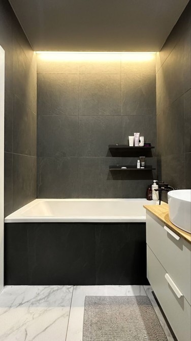 В квартирі зроблено дизайнерський ремонт, є вся необхідна побутова техніка: посудомийка, вбудований холодильник, сенсорна витяжка, варочна поверхня, мікрохвильовка, духовка, пральна машинка з функцією осушки, кондиціонер, телевізори, душ, ванна, інсталяція, парящя стеля, паряще ліжко, декоративна оздоблення стін-штукатурка