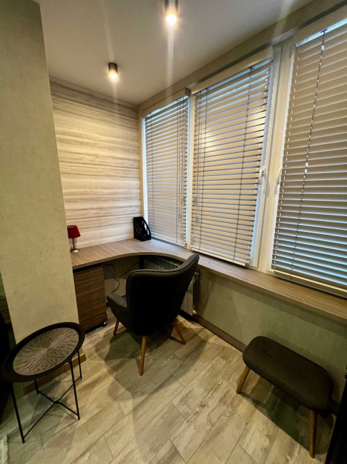 • Робоча зона: Біля вікна у вітальні облаштоване повноцінне робоче місце — ідеально для тих, хто працює віддалено.