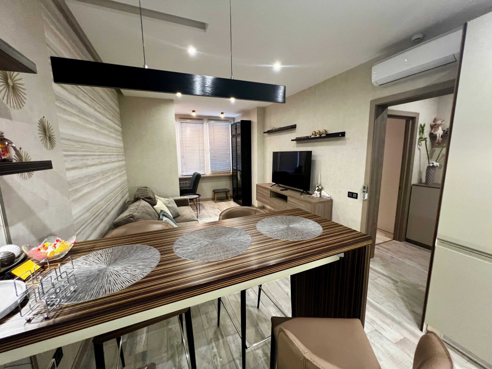 Пропонується в довгострокову оренду стильна 1-кімнатна квартира (формат "євродвушка": простора кухня-вітальня + окрема спальня). Загальна площа – 45 кв.м.