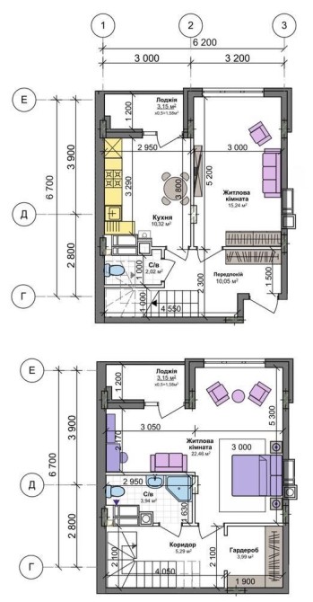 Двоповерхова квартира, в якій присутні 2 санвузли, гардеробна, 2 лоджії.