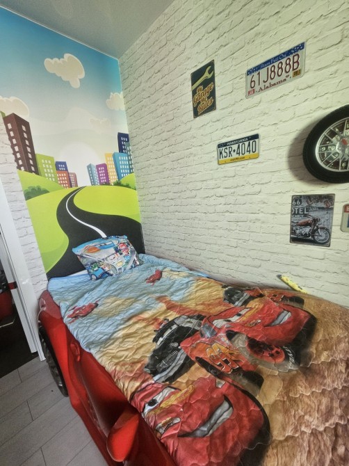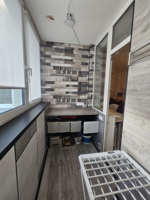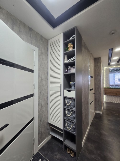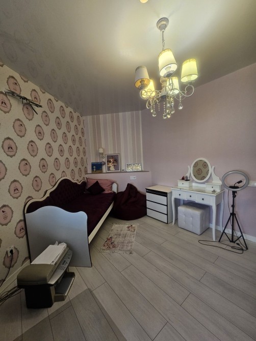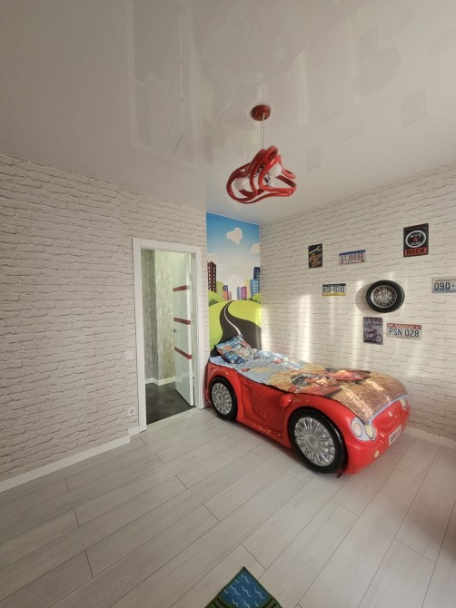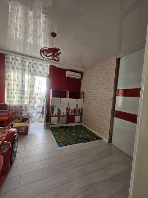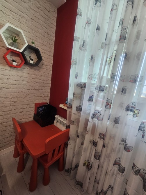 є 2 дитячі для хлопчика і дівчинки ,кухня студіо,і маленька спальня,гардероб ,2 санвузол,2 балкони (на одному місце для сушки і глажки ,на іншому робоче місце)